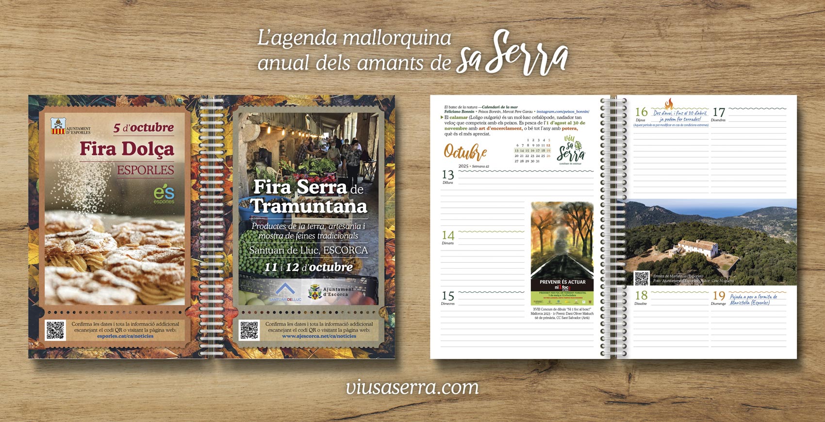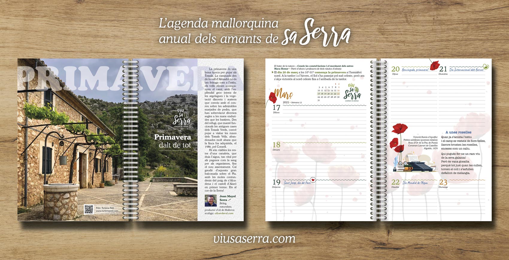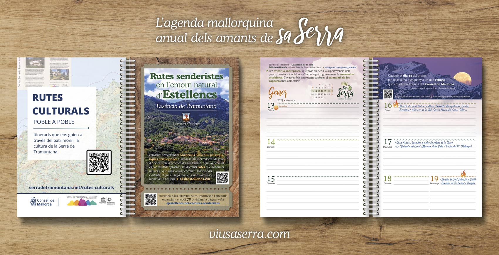 Una agenda mallorquina anual per als amants de la serra de Tramuntana. 365 dies d'entreteniment i aprenentatge al voltant de la nostra Serra! Un producte local, fet a Mallorca, seguint uns criteris sostenibles de protecció del medi ambient, la identitat i la cultura de la serra de Tramuntana.