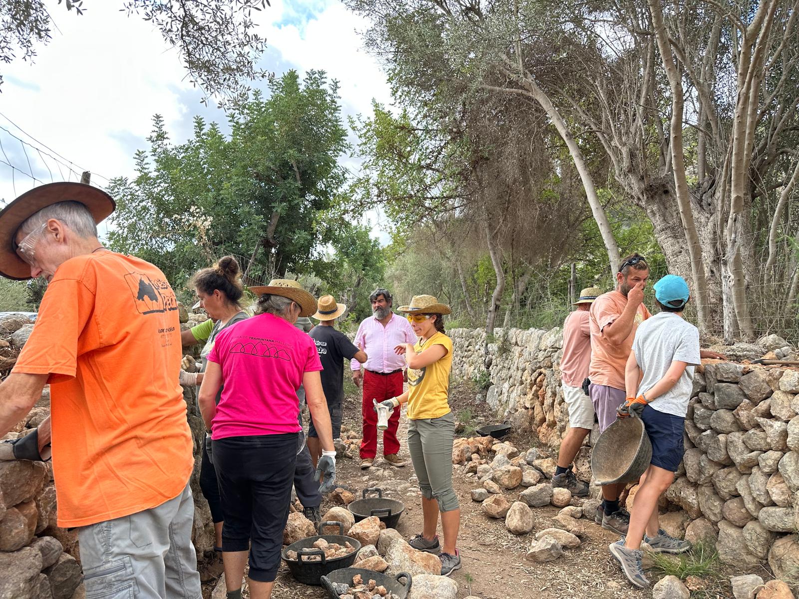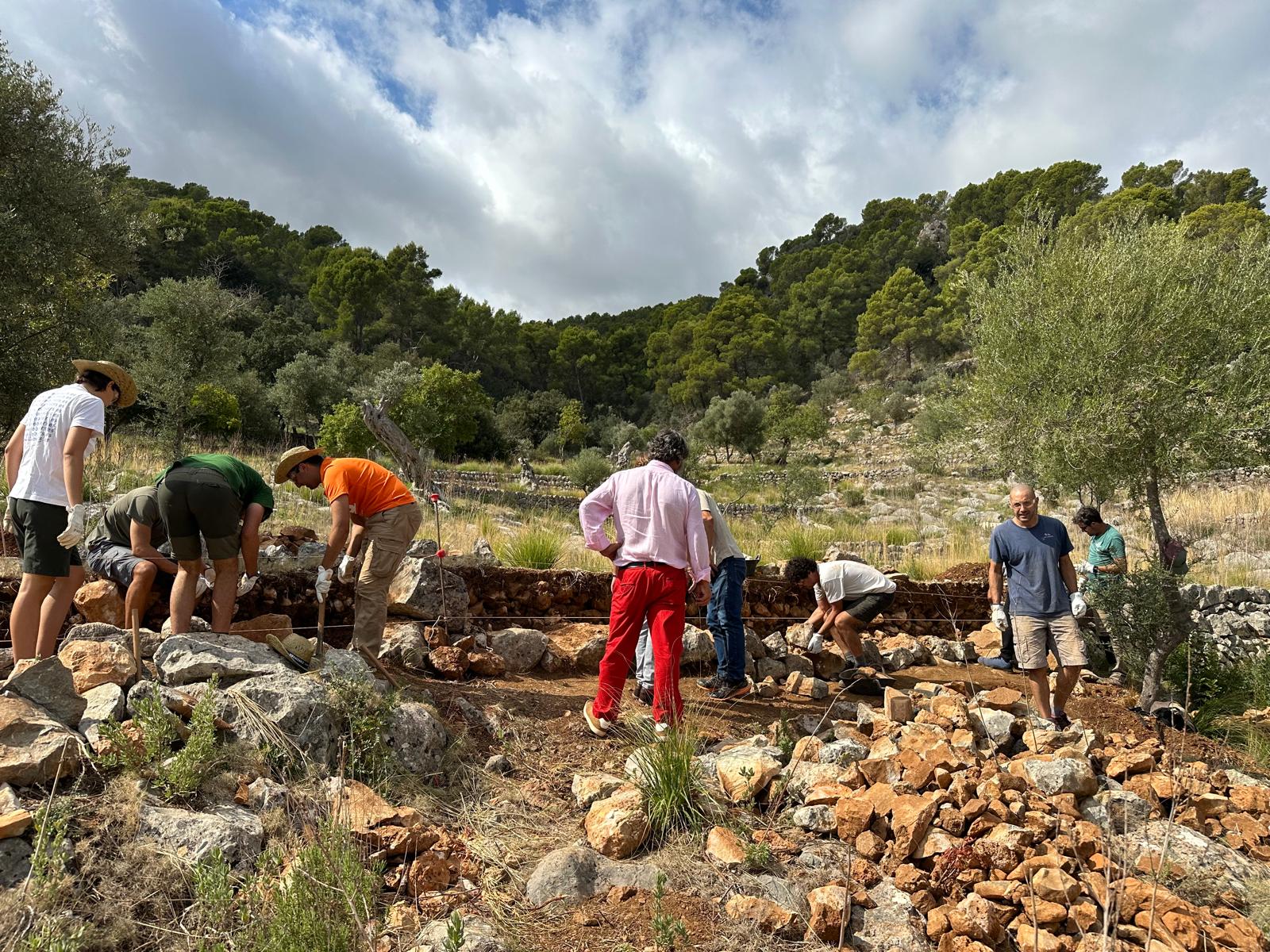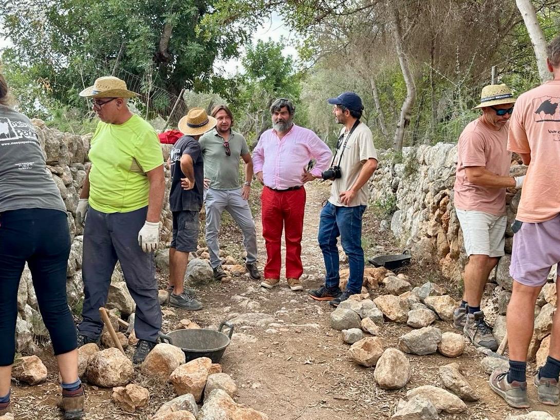 Pedro Bestard también ha visitado a los participantes del curso de iniciación a la construcción de marges que se está celebrando en la finca pública, con motivo de la Semana Europea del Patrimonio de Piedra en Seco
