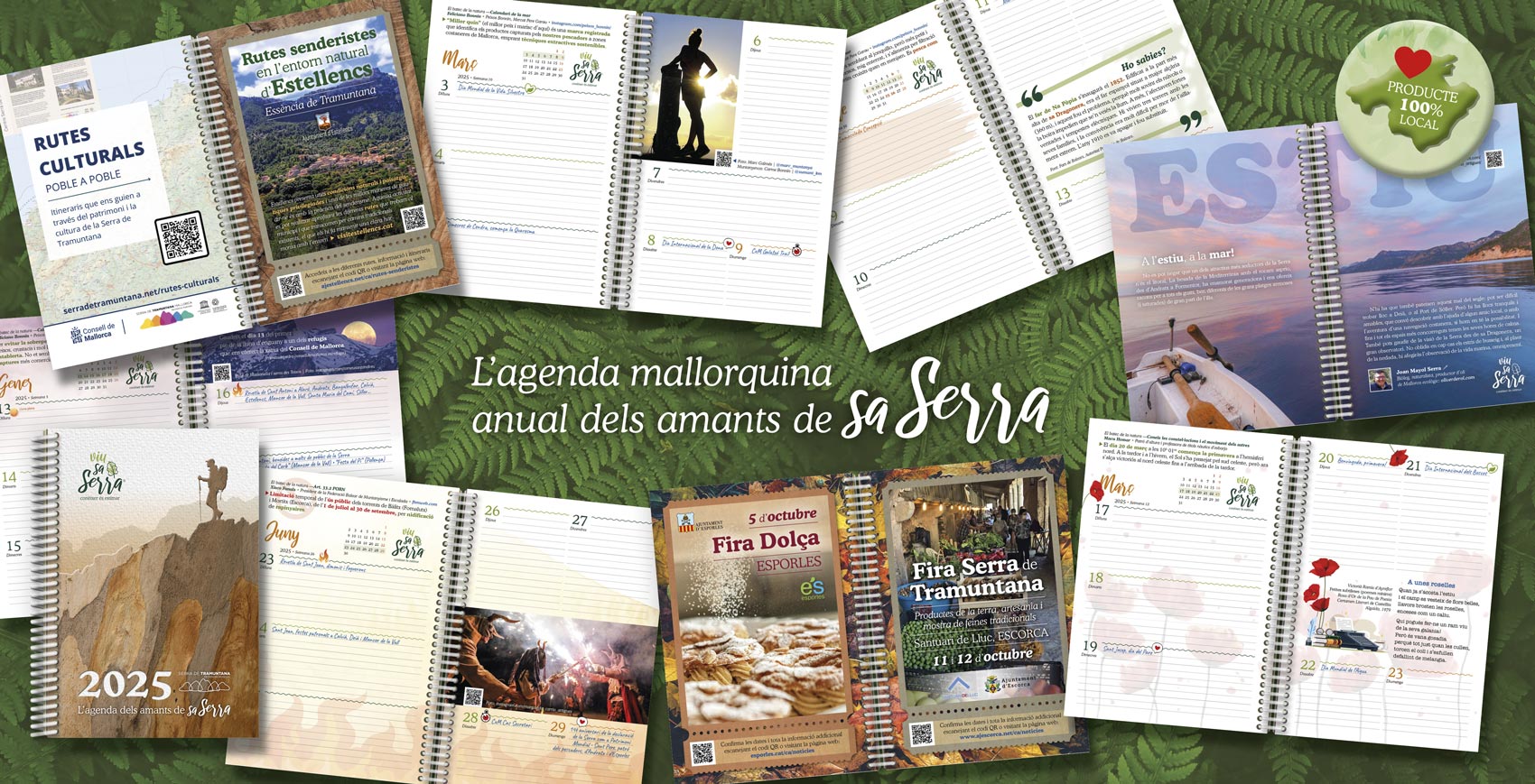 Una agenda mallorquina anual per als amants de la serra de Tramuntana. 365 dies d'entreteniment i aprenentatge al voltant de la nostra Serra! Un producte local, fet a Mallorca, seguint uns criteris sostenibles de protecció del medi ambient, la identitat i la cultura de la serra de Tramuntana.